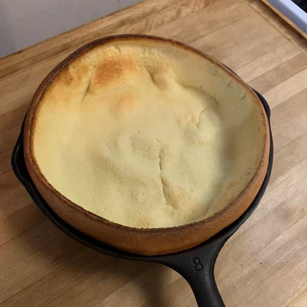 Remove from heat and allow to cool a bit as your dutch baby finishes