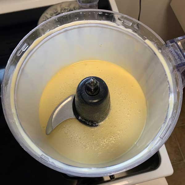 Add the milk, eggs, vanilla extract, and butter to your food processor